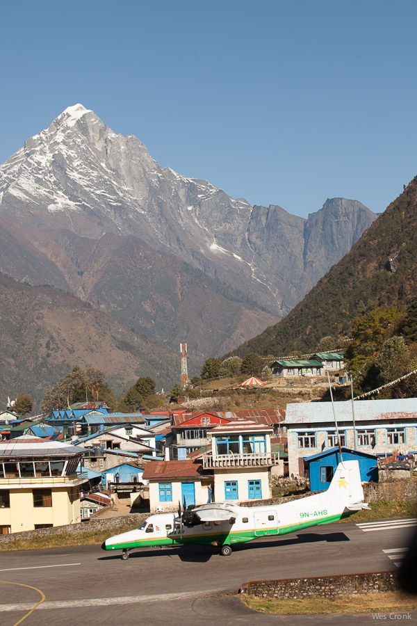 Morning fog frequently delays flights in and out of Lukla, and our last day was no different. Waiting at the airport for our flight.